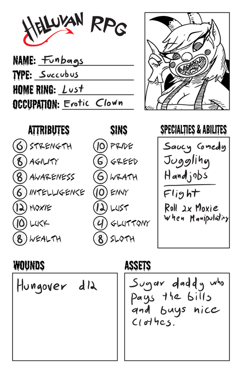 And now, there's finally a demon sheet, and example character. Sheets are in a separate file because the actual book is 6×9".